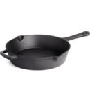 Het emaillen oppervlak heeft een natuurlijke anti-aanbakwerking die in het gebruik alleen maar beter wordt. Geïntegreerde schenktuiten om sappen en sauzen gemakkelijk uit te schenken. Of u nu een ontbijt of een diner klaarmaakt: de gietijzeren koekenpan is een veelzijdige aanvulling op uw binnen- of buitenkeuken.