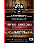 Pit Boss kersenhout pellets bevatten 100% natuurlijk kersenhout en bevatten geen toegevoegde geuren, sprays, chemicaliën of lijmen.