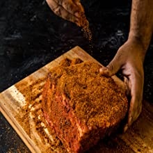 zout, specerijen (inclusief chilipeper, zwarte peper), ui & bevat minder dan 0,5% van: knoflook , Natuurlijke smaak (inclusief Hickory Smoke).